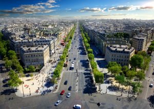 View on Avenue des Champs Elysees from Arc de Triomphe in Paris, France
